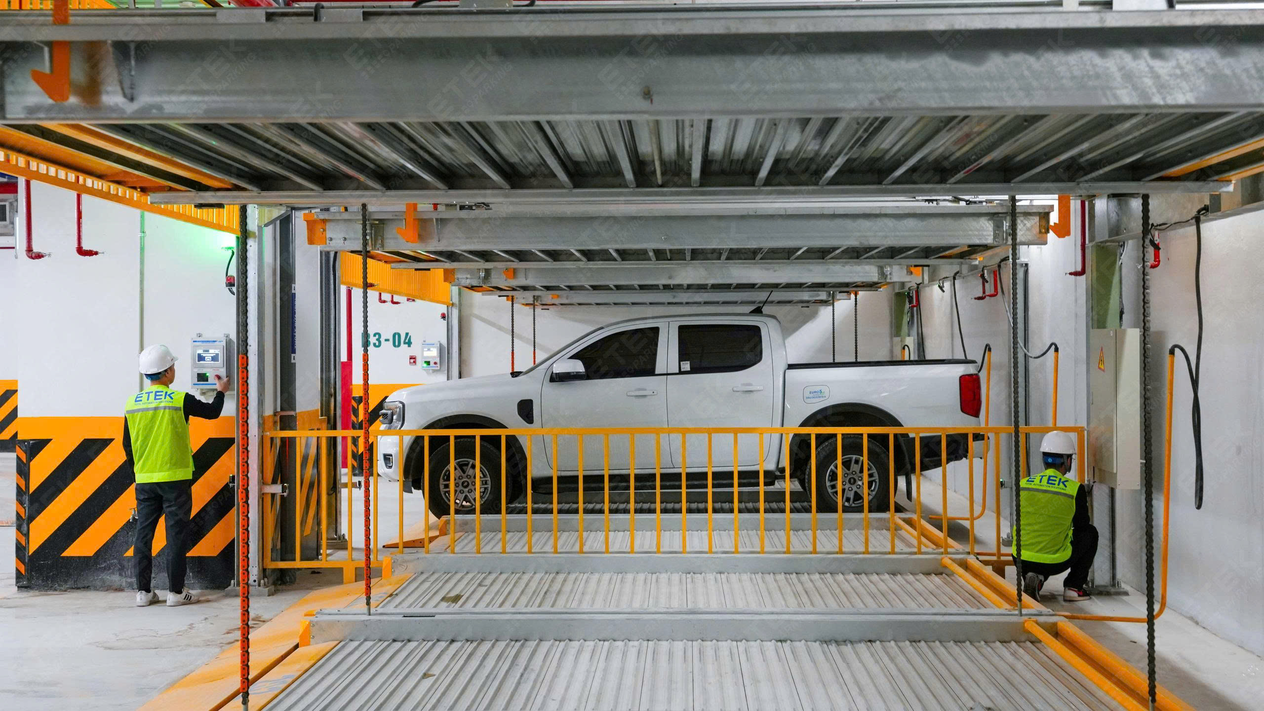 Hệ thống đỗ xe xếp hình 2 tầng do ETEK Parking triển khai cho phép gia tăng đáng kể số lượng vị trí đỗ xe trên cùng một diện tích mặt bằng, so với phương án đỗ xe truyền thống.
